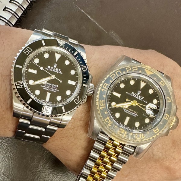 사무실에서 책상 옮기다가 얼마 전 구매한 GMT MATER II 시계를 책상 모서리에 쾅~하고 부딪혔어요.