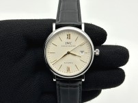 23212433 ZF공장(AF) IWC 포르토피노 오토메틱 40 스틸 화이트다이얼 옐로우골드핸즈 가죽스트랩