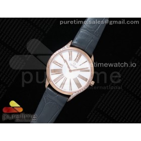오메가 드빌 트레소르 퀴츠 로골 화이트다이얼 가죽스트랩 De Ville Tresor Quartz 36mm Ladies RG White Dial on Black Leather Strap Ronda Quartz