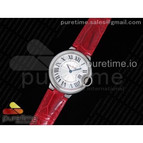 AF공장 까르띠에 발롱블루 33MM 스틸 레드크로커다일스트랩 Ballon Bleu 33mm SS White Textured Dial on Red Crocodile Strap Jap Quartz > 까르띠에