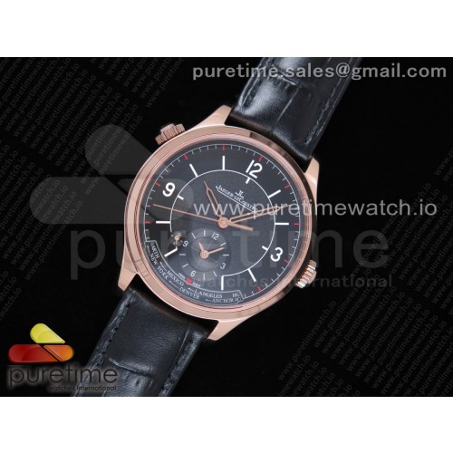 TWA공장 예거르쿨트르 마스터 지오그래픽 로즈골드 금통 블랙다이얼 가죽스트랩 Master Geographic RG 1428530 Black Dial on Black Leather Strap A939