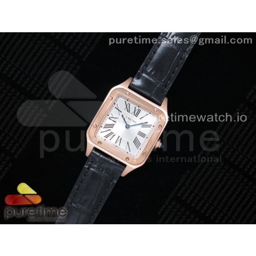 XF공장 까르띠에 산토스 뒤몽 27.5 로즈골드 금통 실버다이얼 가죽스트랩