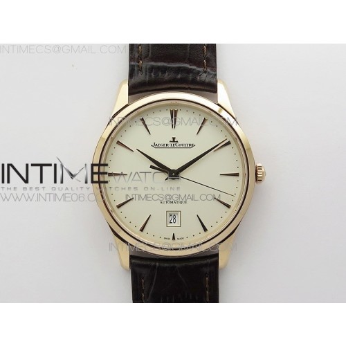 ZF공장 예거르쿨트르 마스터 울트라씬 데이트 1238420 로즈골드금통 화이트다이얼 가죽스트랩 Master 1238420 RG ZF 1:1 Best Edition Ivory White Dial on Brown Leather Strap A899/1