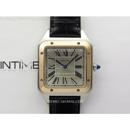 F1공장 까르띠에 산토스 뒤몽 46.6mm 로즈골드콤비 실버다이얼 블랙가죽스트랩 Santos Dumont 46.6mm SS/RG F1F Best Edition Silver Dial on Black Leather Strap Quartz
