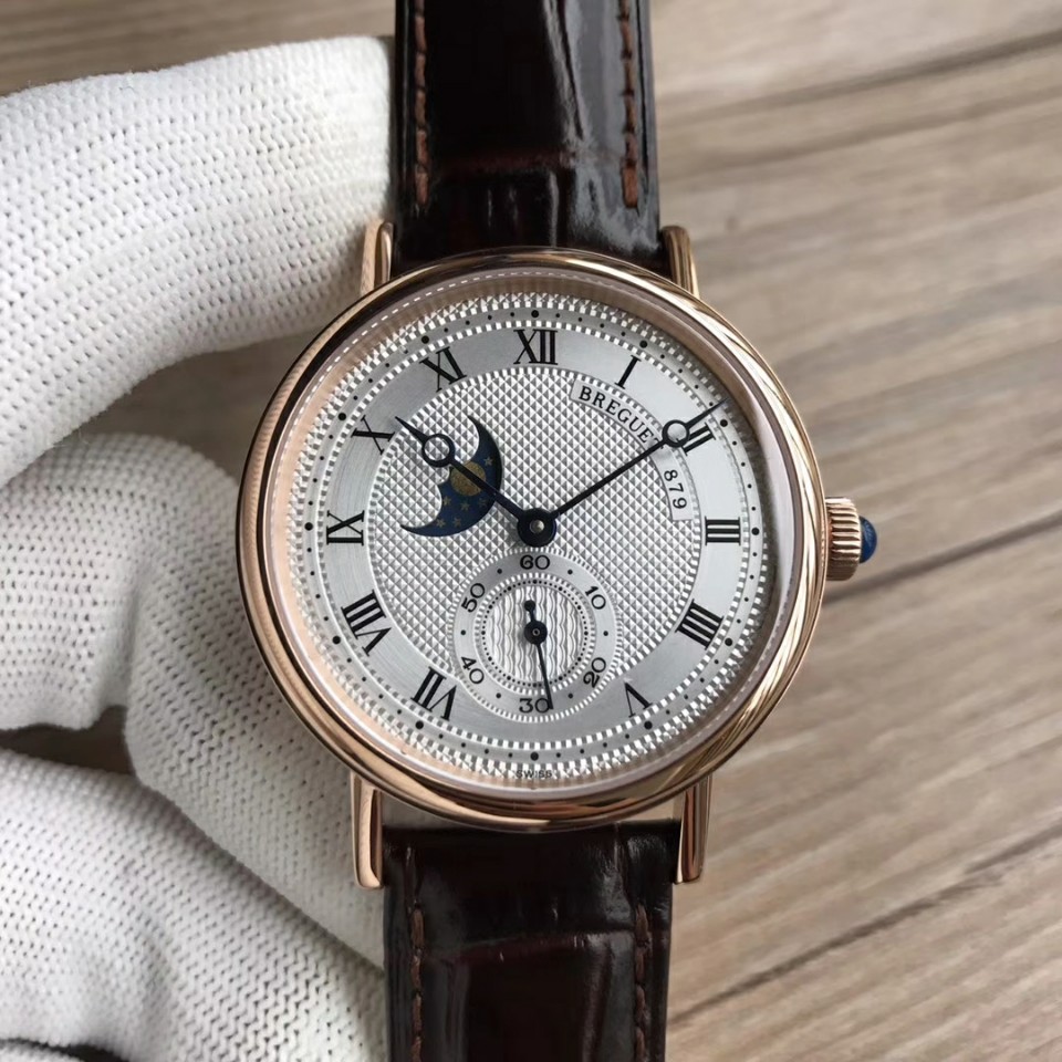 GXG공장 브레게 문페이즈 스몰세컨드 로즈골드케이스 화이트다이얼 가죽스트랩