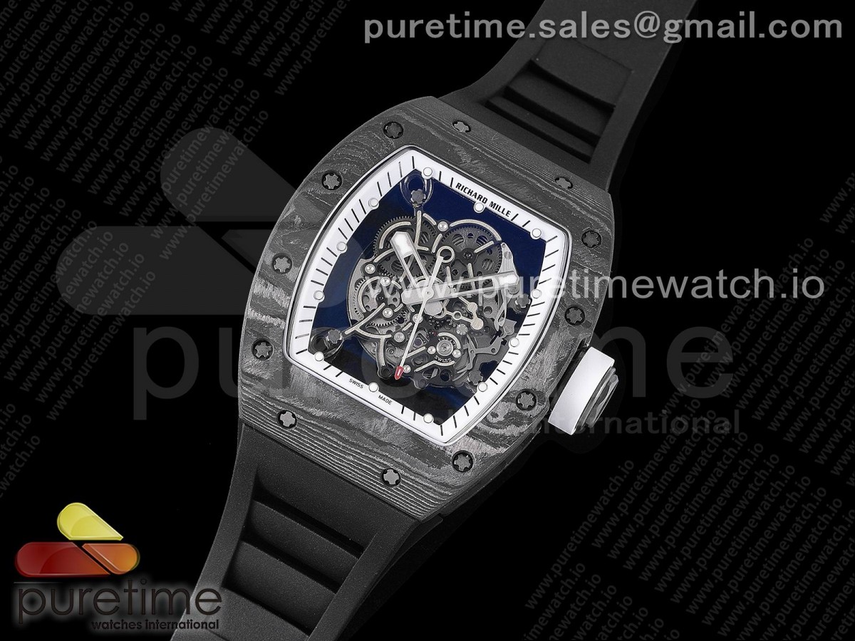 ZF공장 리차드밀 RM035-02 NTPT카본 화이트이너베젤 스켈레톤다이얼 블랙러버스트랩 RM035-02 Real NTPT ZF 1:1 Best Edition Skeleton White Dial on Black Rubber Strap NH05A V3