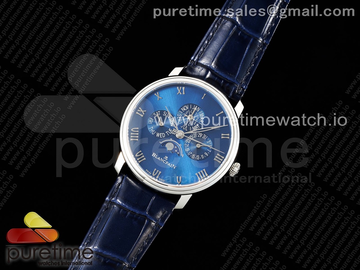 HR공장 블랑팡 빌레레 콴티엠 퍼페츄얼 6656 스틸 블루다이얼 가죽스트랩 Villeret Quantieme Perpetuel 6656 SS HRF Best Edition Blue Dial on Blue Leather Strap A5954